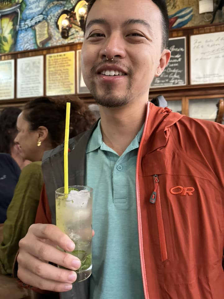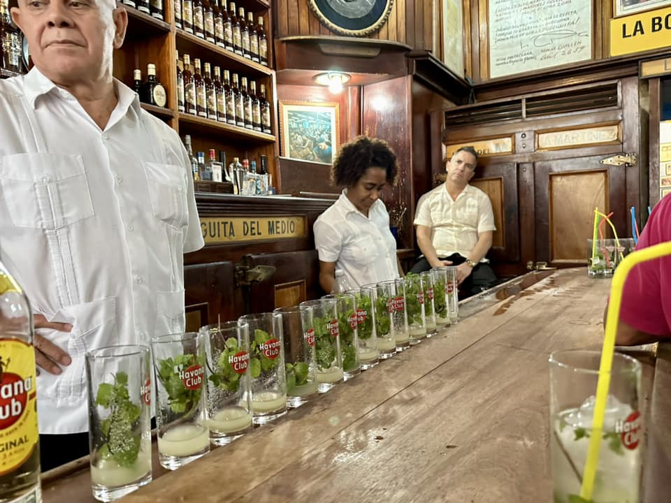 The atmosphere in La Bodeguita was quite different than the upscale look in El Floridita. This bar was open to the street on one side and very tiny. Even still, a five piece band was cranking out lively Cuban music, and the bartenders kept a long line of glasses filled with mint, lime, and sugar on hand, ready for them to muddle and add rum, ice, and soda as necessary. To be honest, the mojito here wasn’t great, but the experience is worth having as a tourist in Habana.